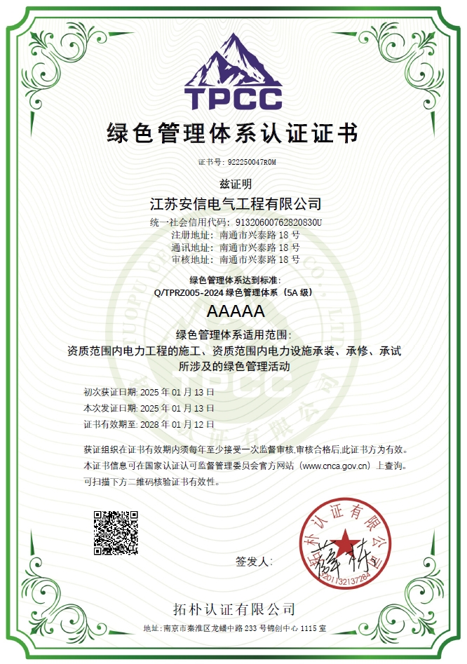 在創業之初,公司就堅持高起點的戰略思路,廣納賢才,集聚行業精英,創新發展,做優企業品牌。現已取得:承裝二級、承修二級、承試二級,電力工程施工總承包二級,輸變電工程專業承包二級,建筑工程施工總承包二級,建筑機電安裝專業承包二級,地基基礎專業承包二級資質證書,并通過了質量、環境、職業健康和安全管理體系認證,確保各項工作有序管控。